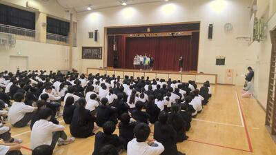 新しく赴任した先生の話を聞いたり、新年度の学校生活の確認をしたりしました。